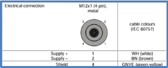 - Raccordement électrique : M12 4 pôles métallique